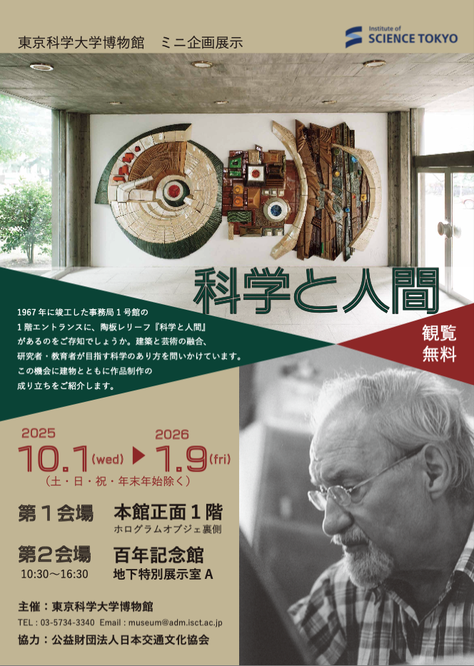展示期間 :2025年11月2日 (日) 〜 2025年12月12日 (金) / 11月4日以降の土日祝日、博物館休館日を除く開館時間 :10:30 - 16:30 /入場無料展示場所 :東京科学大学博物館 百年記念館 2階企画展示室