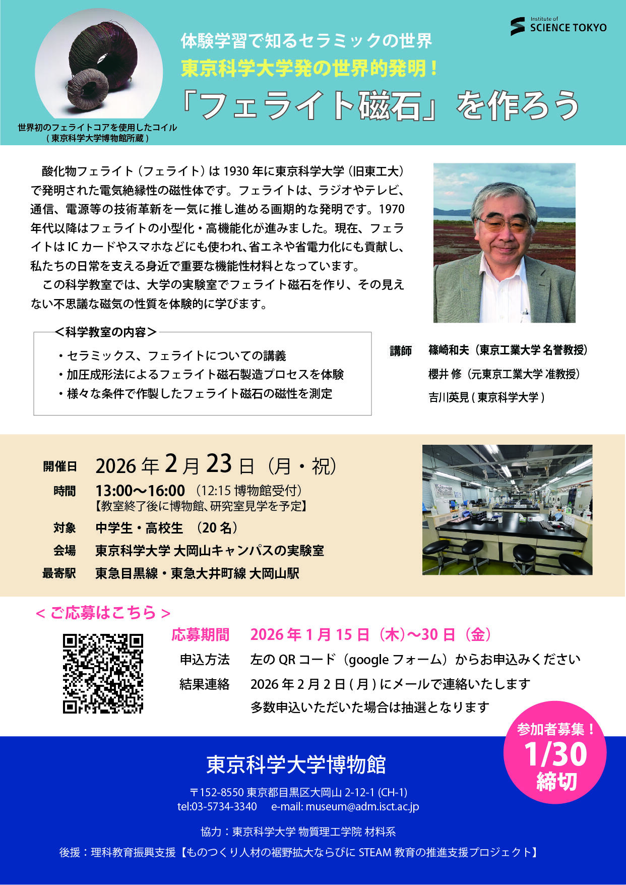 科学教室参加者募集!1月30日(金)締切!